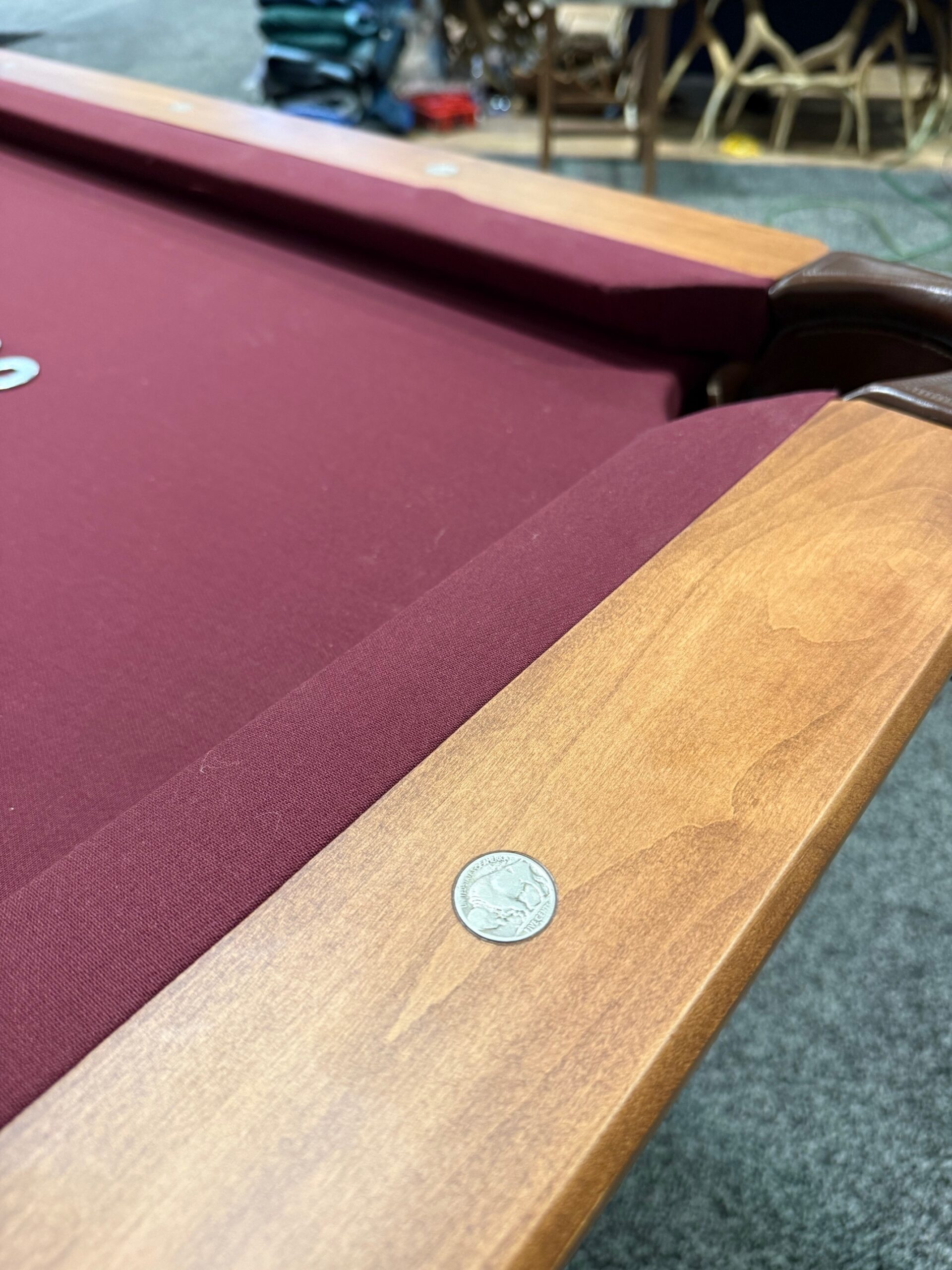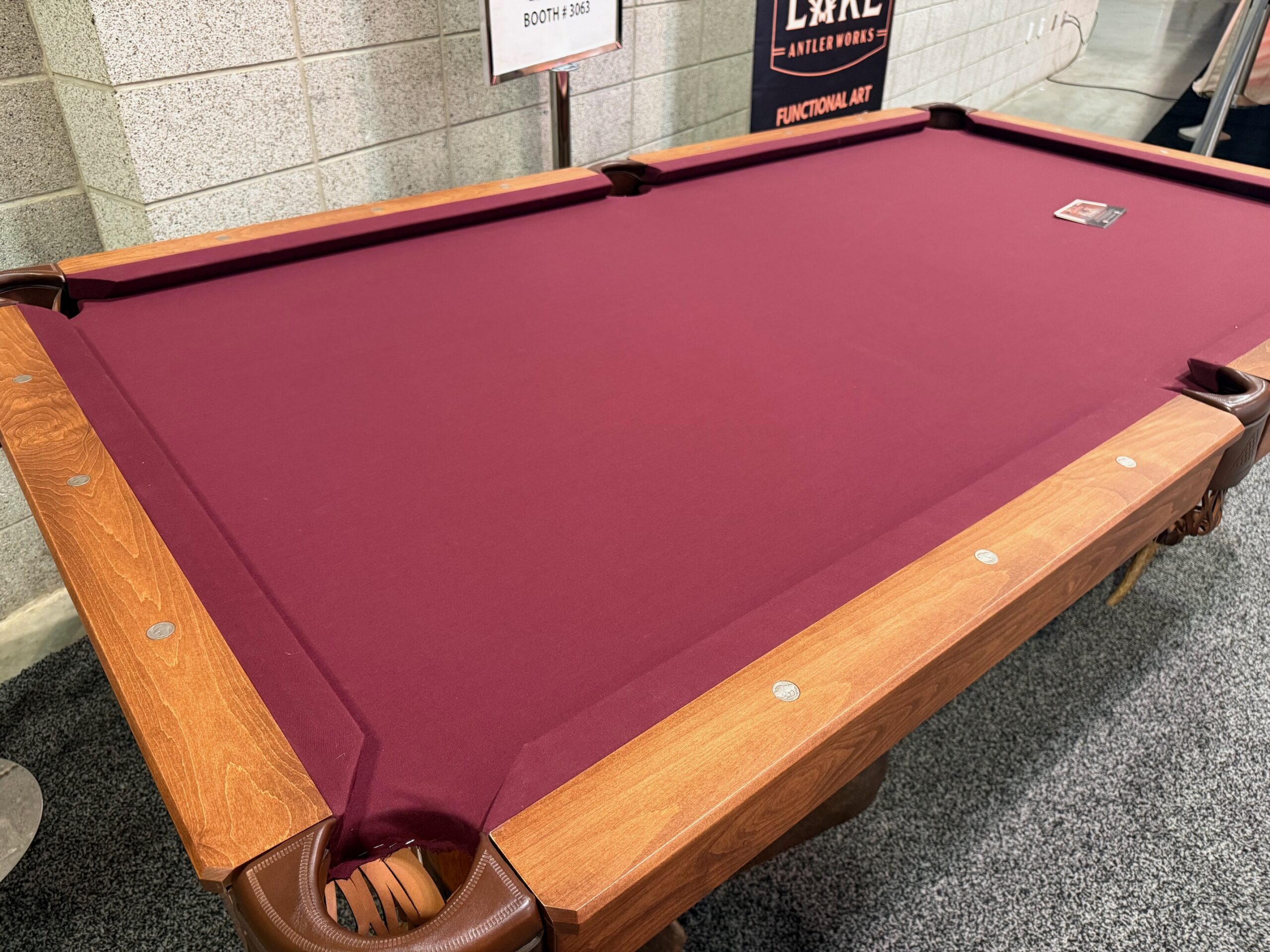 Finished with premium burgundy felt and genuine leather pockets embossed with traditional billiards iconography, it is as much a gallery-quality sculpture as it is a professional-grade gaming surface.